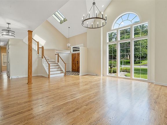 Welcome Home! This former Parade of Homes beauty is a show stopper! It was built to perfection and the homeowners have kept up perfection! New front door makes a bold statement and adds a stately, classic quality. Living room with fireplace has floor to ceiling windows with arched tops that flood the space with natural light. Dining room with glass sliding doors allows for easy transition between rooms. Kitchen was tastefully remodeled with granite counter tops, sink & added cabinets for more storage. Great room off the kitchen with new gas fireplace steps out to a 2 tiered deck with awning overlooks a private treed yard with shed & fire pit. New hardwood stairs add elegance to the entryway and lead to 4 generously sized bedrooms. Owners bedroom with double closets, updated bathroom with double vanity, walk in shower with decorative tile surround & soaking tub. New carpet in bedrooms and an updated main full bathroom. A finished walk out lower level with full kitchen, family room, bedroom & bathroom makes a perfect in-law suite! Recent updates include roof, gutters, skylight, windows, furnace, A/C, hot water heater, stained hardwood floors & more! This is the place to call HOME!