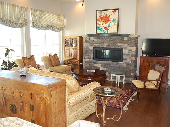 Stunning Augusta Plan located in exclusive Enclave at Thompson River Ranch is sure to delight even the most discriminating buyer. Home includes 3 master bedrooms, hard surface flooring on main level, granite countertops, large kitchen island, upgraded cabinets with pullout-soft close feature, coffered ceilings, expanded covered back patio with shades backing to open space, oversized 3 car garage with workshop including cabinets and shelving. Loft space with windows to the west cozy family room and third bedroom with 3/4 bath including luxury features. Covered front patio with room to sit back and enjoy the sunset. Thompson River boasts community pool, park with shelters, trail system, Riverview a new K-8 school to open fall 2021. Pre-inspected for your piece of mind. This home has something for everyone.