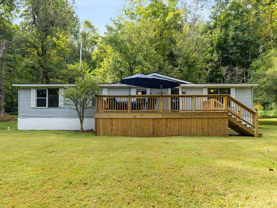 Privacy and convenience come together in this beautifully updated 3-bedroom, 2-bath home set on over 3.5 wooded and level acres, just minutes from the interstate. Inside, you’ll find new flooring throughout, a spacious open living area with a cozy wood-burning fireplace, and a formal dining room perfect for gatherings. The kitchen features modern white cabinets, a new stainless steel refrigerator, and a dishwasher. The private primary suite is thoughtfully separated from the main living spaces and offers a full bath with a tile shower. Both bathrooms have been stylishly updated for a modern feel. Step outside to your own private retreat, complete with a brand-new oversized deck, screened-in porch, firepit area, and a new storage shed. With a new roof and Nest thermostat already in place, this home combines comfort and efficiency. Tucked away for peace and tranquility yet less than 10 minutes to restaurants, shopping, and more—this property is the perfect balance of seclusion and accessibility.