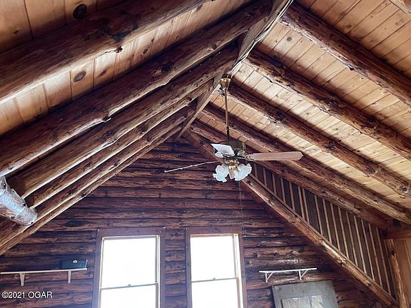 Cozy log cabin with unfinished basement. Large three car detached garage on one acre.