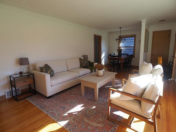 Charming 1950’s brick rambler. Beautiful outdoor spaces and trees. Great lighting throughout with large windows. Well maintained 50’s character, original hardwood floors throughout mainfloor and beautiful cove ceiling in main living room. Basement is ready for your next party at the wrap around bar.