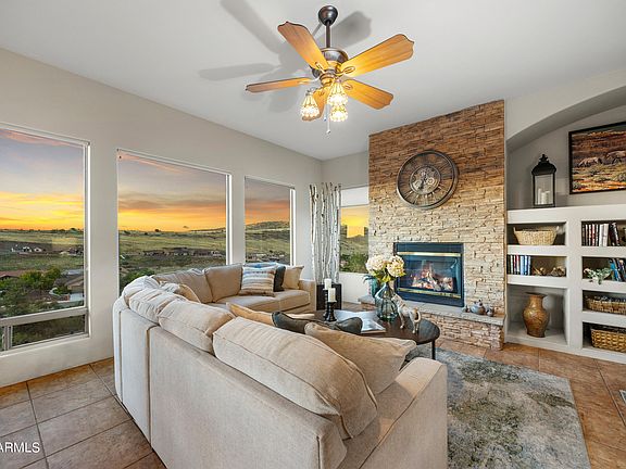 Plenty of WOW Factor with this OUTSTANDING Contemporary Ranch style in Desirable YAVAPAI HILLS Subdivision on a HALF ACRE with a Flat/Level Drive & Incredible VIEWS!!! Home has 2707 square feet all on ONE LEVEL with 3Bedrooms/2.5Bathrooms/3CarGarage, + 12x21 Arizona Room as a Bonus, Beamed Ceilings, Ceiling Fans, 18'' Tile in all wet/traffic areas & carpet in balance (Seller offering $9,000 carpet allowance with full price offer), Gas Fireplace w/Blower, Stone Chimney face, Entertainment Niche, GREAT ROOM Concept, Formal Dining room, Honeycomb Blinds, Peeled Pole Accents, & Central Vac. Kitchen is Beautiful with Knotty Alder Cabinetry, GRANITE Countertops, Under Cupboard Lighting, ISLAND, Stainless Steel Appliances, Warming Oven, Wall Oven/Micro, & Large Pantry... Master is oversized with direct access to Deck, Large Walk-In Closet, Dual Sinks, Jetted/Garden Tub, & Large Snail Shower. Bedroom #2 is being used as Office/Den with Built In Desk & has direct access to guest bath with Dual Sinks, Bedroom #3 is spacious....has Zoned HVAC, Fenced Back Yard, New Trex Deck with Stairway to lower level, Large Laundry w/upper & lower cabinetry, Storage Cabinetry in Garage, & has huge standup crawl space for MAN CAVE.