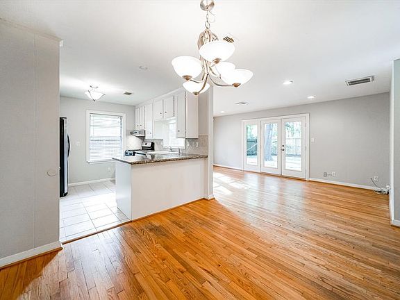 Charming house on large corner lot w/great curb appeal & Pretty landscaping in popular Willowbend area. Lovely beveled glass door. Wonderful open floorplan. Real hardwood floors (no carpet)! Updated kitchen w/granite counters & stainless steel appliances & brushed nickel light fixtures. Kitchen w/storage shelves & tiled floor. Fresh interior paint! Light & Bright! Recessed lights. Double-paned French door to backpatio. Updated bathrms w/lots of storage space for linens & toiletries. Neutral colors. Ceiling fans. 2-inch white blinds. Indoor laundry rm. Includes Refrigerator, Washer, Dryer. Brick on ALL 4 sides. Backyard w/Wood privacy fence & shade tree. Cute spot for herb garden, chiminea & hammock for relaxing. 2-car garage w/room for extra parking spot on curved driveway. Located on quiet street. Easy freeway access. Shopping area & restaurants nearby. Close to Medical Center & Galleria. Short walk to Willow Waterhole Greenspace! Clean, move-in condition! Did not flood, per seller.