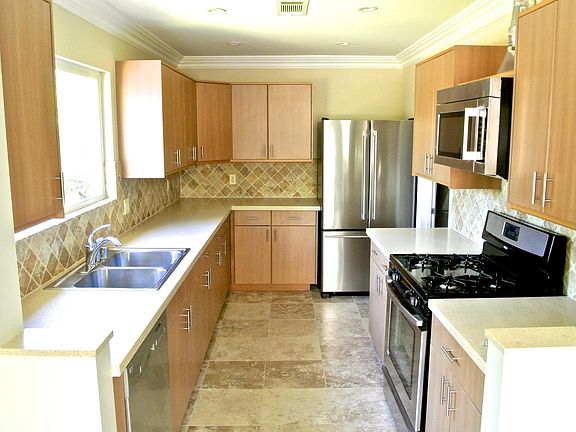 Sunny & Chic. Corner Lot House in Studio City's white picket fence neighborhood. Colfax School District. Large pool in an enclosed, private back yard. Remodeled open kitchen with stainless appliances and granite counter tops. Spacious, bright dining room. Large Living room with Fireplace and sliding doors to a fenced courtyard. 3 Spacious Bedrooms. Roomy master with a wonderful bathroom, a walk in closet and sliding doors to the pool. Central heat & air. Detached, finished two car garage with A/C for your creative space or fabulous cars. Pet considered. Close to Private & Public Schools, Hospitals, Great Grocery Stores, Wonderful Restaurants & Freeways. Showings by appointment only starting on August 15th. The Perfect House in an Ideal Location! Private large pool.Tenant pays for all utilities & services except pool service & gardener. Detached two car garage has heat & A/C...a perfect creative space or to house a fabulous car. Two additional parking spaces in front of garage. Spacious living & dining rooms. Remodeled kitchen. Three remodeled bathrooms. Pet considered. Leases of one year or more.