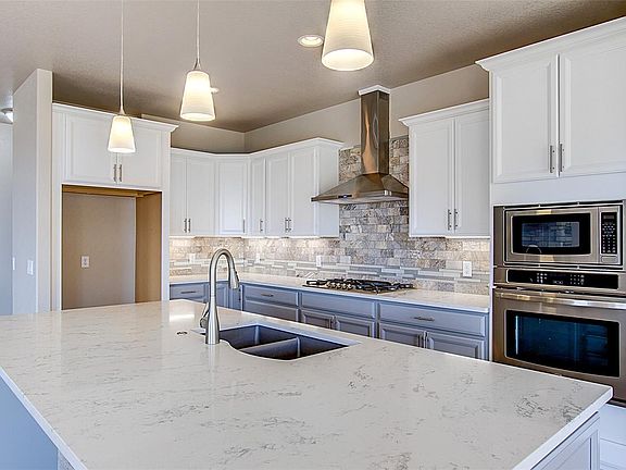 Stunning new build takes advantage of amazing views of the Front Range. Inside a large great room with crown molding, and hardwood floors with a custom stone fireplace the focus of the room along. The gourmet kitchen has a large island with a sink and counter bar, double oven, and beautiful tile backsplash. Dining room with custom accent wall walks out to a covered back deck. Retreat to the main level master with views of the front range and a ensuite 5 piece master bath. A main level office with french doors. Downstairs the garden level basement walks out to the back patio. The large family room has a gas fireplace offers plenty of flexible living space. Two additional bedrooms with walk in closets and two full bathrooms complete the lower level. The garage offers additional storage space with a bonus space off of the mudroom.