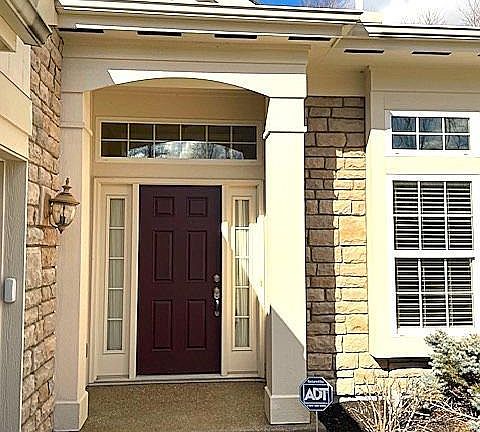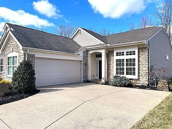 Desirable ranch located in the Twin Spires Community at Lexington Run. Open flr plan w/tall ceilings and abundance of natural light. Spacious primary suite includes 2 walk-in closets along with a large en suite. Beautiful, large kitchen includes 42" cherry cabinets & granite counters, SS apps, pantry & planning desk area. Step out back and enjoy the covered patio & wooded view. The 3rd bedrm is used as a study w/glass French doors. Gas FP. New carpeting throughout - 2024. One floor living.