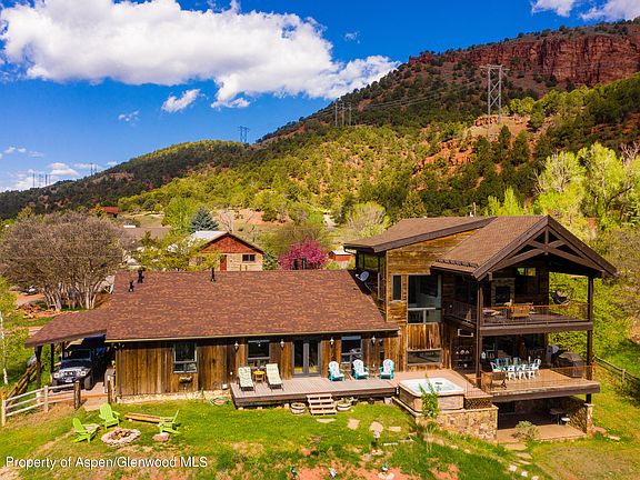 Nestled at the base of the majestic Seven Castles rock formations, this beautifully renovated and expanded 4-bdrm+office home offers breathtaking views of the Frying Pan Valley. Owned by a luxury builder and self-professed ''foodie,'' the kitchen is the masterpiece of the home with stunning walnut cabinetry, Sub-Zero and Wolf appliances, quartz countertops and butcher block ''prep'' area, plus a coffee station and built-in Mugnaini pizza oven. The main suite features vaulted ceiling with reclaimed trusses, plaster walls, a double-sided fireplace, private deck, a large walk-in closet and spacious bath with a fireplace & sitting area. The living room and the game room/den open to a deck with a covered dining area and brand new saltwater hot tub. (see more...)Additional recent upgrades include a lower level gym, expanded rear deck, a new asphalt auto court, and gravel that was just poured this Spring on the neighborhood road. Outside, you'll find a firepit, shed, playhouse & raised garden bed. This is a true Colorado paradise with fishing, hiking, and biking outside your door, while Basalt's shops, restaurants and galleries are a scenic five miles away. This property offers some of the most breathtaking views of the Frying Pan Valley and easy access to the Frying Pan River. Additional recent upgrades include a lower level gym, expanded rear deck, a new asphalt auto court, and gravel that was just poured this Spring on the neighborhood road. Outside, you'll find a firepit, shed, playhouse & raised garden bed. This is a true Colorado paradise with fishing, hiking, and biking outside your door, while Basalt's shops, restaurants and galleries are a scenic five miles away. This property offers some of the most breathtaking views of the Frying Pan Valley and easy access to the Frying Pan River.