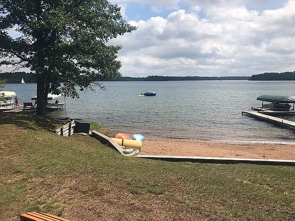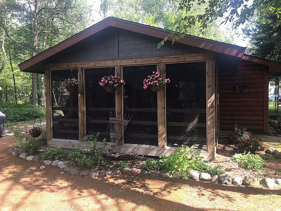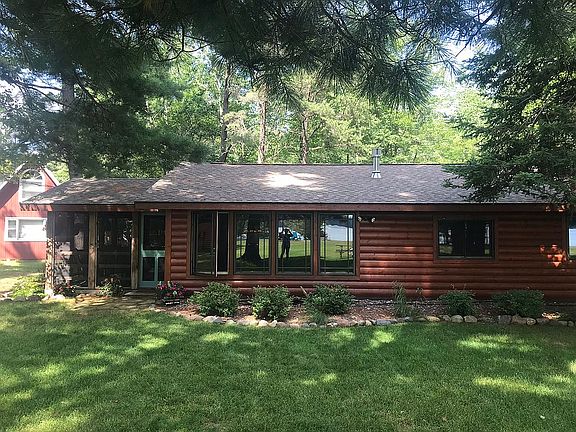 Log exterior. Screened porch. Office. Gas fireplace with heater blower. Tankless water heater. Water softener. Lake frontage. Wooded lot. Storage shed.