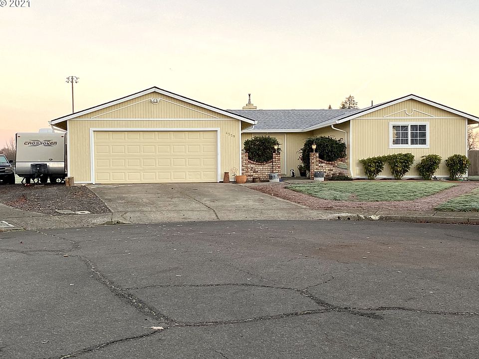 Very Well Maintained One Level Home Offers Many Updates. Kitchen has Custom Rustic Alder Cabinets with Soft-Close and Pull-Out Features, Matching Appliances, Eating Counter. Slider to Covered Patio. Sunken Living Room has Fireplace ready for a Pellet Stove. Primary Bedroom Suite has Walk-In Closet & Shower. Remodeled Hallway Bathroom has Tub/Shower Combo. Stamped Concrete Patio, Garden Boxes, Backs to Green Space. RV Parking and Located on Quiet Cul-de-Sac. Oak Floors. Ductless Heating/Cooling.