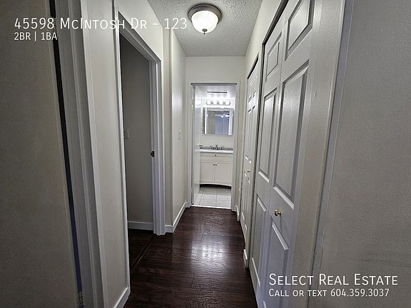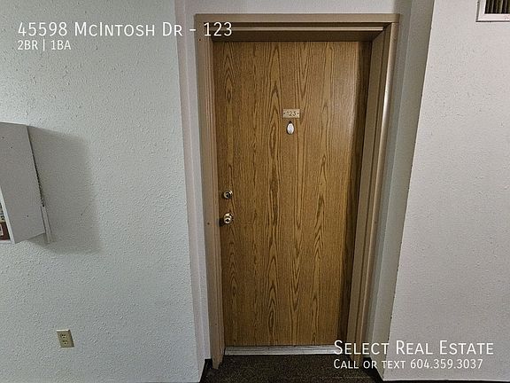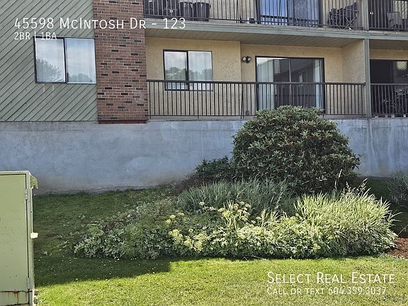 Address: 123 - 45598 McIntosh Drive Date Available: July 15th, 2025 Description FIRST MONTH RENT FREE! Make this beautiful and bright 2 Bed Apartment in McIntosh Manor your new home! This unit comes freshly painted with two great size bedrooms, new kitchen cabinets, new flooring, new vanity and new tile work and 1 bathroom with a tub. The kitchen boasts clean white cupboards, a stainless steel fridge and a dishwasher. You have your own in unit washer and dryer and plenty of storage space. Great central location close to schools, shopping, transportation, the hospital and recreation. Comes with 1 Parking Space and 1 Storage Locker! Lease Details Lease duration: 1 Year Deposit: Months Rent. Pet Deposit: Months Rent if applicable No Smoking Property Details Bed: 2 Bath: 1 SQFT: 900 Pet Details Pets(Yes/No): No as per Strata Type Allowed: None Number: 0 Size Restriction: N/A Exterior Details BBQs allowed(yes/no): Yes Parking type and how many: 1 Parking Space (#12) Yard fully fenced: N/A Shed Or Shop Usage: No Appliances Included Fridge: Yes Range: Yes Dishwasher: Yes Microwave: No Washer/Dryer: Yes Shared Laundry: No Pay Laundry: No Fireplace: No Air conditioner: No Standalone freezer: No Utilities Gas: N/A Hydro: 100% Tenant Internet/Cable: 100% Tenant Water, Sewer, Garbage: 100% Landlord Utility Type Heat Source: Electric Baseboard Septic/Sewer: Sewer Water Source: City Tenant Responsible for Septic pumping: No Strata Age Restriction: NA Storage Locker: Yes #22 Move-in/out Fee: NA Move in Scheduling: 72 Hours Notice to Strata Required