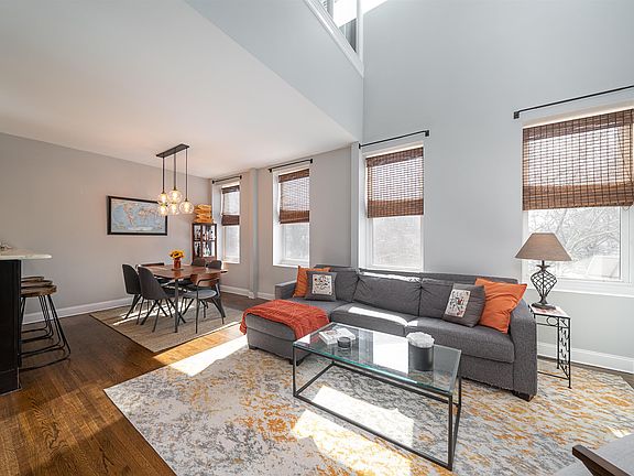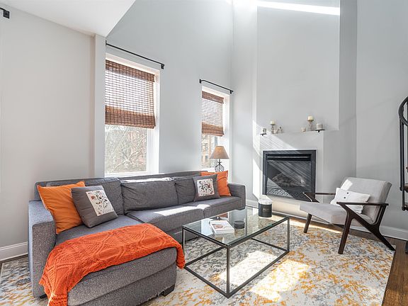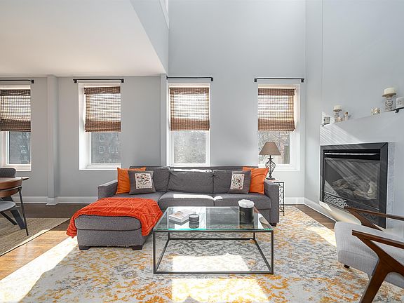 Fall in love with this highly sought-after top floor, South facing, duplex home at Roberts Court with gated parking! This 2-BR home is beautifully laid out with modern finishes and an inviting two story living room with large windows, flooding the home with light all day long. The living area, open to the DR and Kitchen, is perfect for entertaining and is accented with a gas fireplace. The kitchen offers generous storage, large marble countertop workspace and stainless steel appliances. Both bedrooms are very well sized and can fit king beds. The master is accented with an exposed brick wall and skylight with motorized shade. Other home features: central AC/heat, large storage/laundry room, half bath on main floor, LED lighting, new appliances: Refrigerator, dishwasher, W/D, New HVAC system. One car parking included in a gated lot, right outside the building entrance. Other building features: elevator, gym, wash/dry room, common outdoor space, covered bike storage and guest parking. Close to all Hoboken has to offer and an easy commute to NYC.
