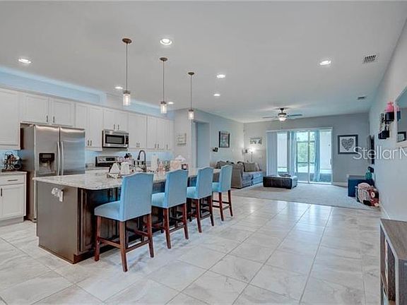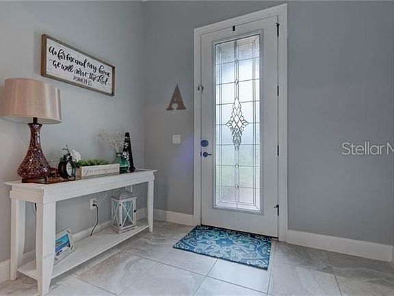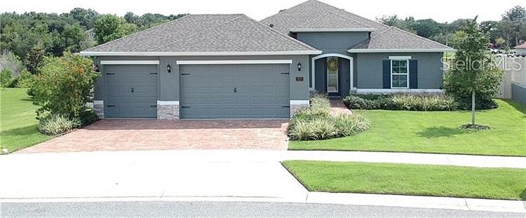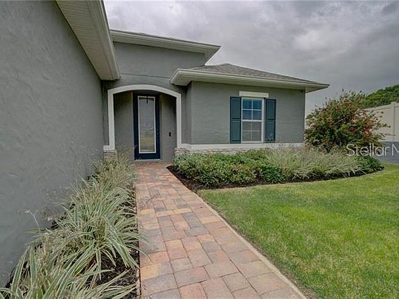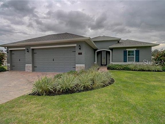 TREMENDOUS upgrades including 9k vinyl fencing, gutters on entire house, and screened in lanai. The entire yard is fully irrigated. One of the largest lots in the quiet subdivision of Venezia, that backs up to conservation land. This pristine Open Concept 4 Bedroom, 3 Bath home is a MUST SEE. Why wait to build when you can move into this almost new home with outstanding merit. Starting with the GORGEOUS kitchen; it has a huge 5'x10' island, upgraded granite counter tops, stainless steel appliances, upgraded 42" white Cabinets, and walk in pantry. This open and spacious kitchen and living room design is great for entertaining or spending time with family. The triple slider in the living room leads out to a covered and screened in Lanai, perfect for relaxing. The large master bedroom has double tray ceilings and an impressive, oversized master bath with doorless entry walk in shower with rain head. Upgraded tile throughout, upgraded doors, high ceilings, security system, and window treatments throughout. Outside boasts a beautiful Brick Paved Driveway and Walkway, 3 car garage, landscaping complete with Irrigation throughout the Lot. Close to Mission Inn Golf, minutes to Lake Ridge winery, shopping and restaurants. Conveniently located to Little Lake Harris recreational lake. Easy access to Turnpike and 30 minutes to Disney Universal theme parks.