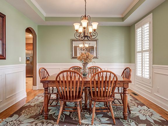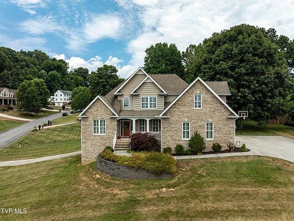 Gorgeous stately custom built brick home with amazing long-range views. Large corner lot with level back yard. FULL Brick exterior with timeless traditional design. The elegant interior features hardwood floors, soaring ceilings with fireplace in living room, formal dining room, eat in kitchen and bar seating, quartz counters, tile floors in kitchen and attached laundry/mud room. Primary bedroom located on main level with hardwood flooring with ensuite featuring a soaking tub, separate shower and an oversized closet. Open staircase leads to two bedrooms, a full bath and an enormous bonus/flex room. Additional features include a powder room on the main level, plantation shutters throughout, decorative Mouldings, central vacuum, gas fireplace, covered patio, covered front porch, attached 2 car finished garage with direct access into mudroom. Downstairs basement has tremendous storage capacity/workshop space in addition to a third car garage area. Move-in ready. Located in the heart of Tri-Cities, tucked away in Glen haven it is just 10 minutes to Bristol or Johnson City, 20 to Kingsport. Buyer/Buyers agent responsible to verify all information. Information taken from tax records and Seller.