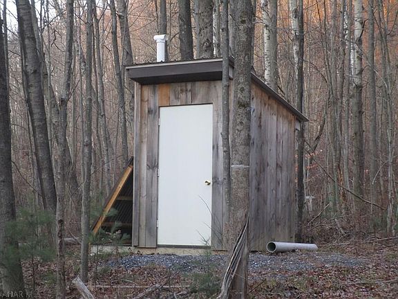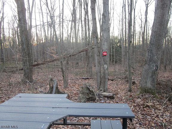 Recreational cabin on 9.8 wooded acres bordering large PA State Game Lands. Built in 2017 as a cabin and not to be used as a residence. The cabin contains a living room, kitchen, dining room as one large room with vaulted ceiling. Large bedroom and shower with wall mounted water heater. Some finish needed. Generator provides the power to run the cabin off grid. Approved outhouse on site and site is approved for on lot sewage. Great getaway location approx 15 minutes from Altoona. Great hunting on site and the miles game lands.