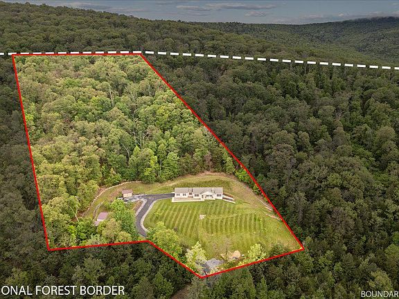 ** All offers are due by 5pm on Sunday, June 9th. ** Welcome to your dream home! This custom-built ranch is nestled on 6.15 unrestricted acres bordering the breathtaking George Washington National Forest, offering total privacy and abundant wildlife. With 3 bedrooms and 2.5 baths, this meticulously crafted residence boasts 1766 finished square feet on the main level and a full, walk-out unfinished basement, providing ample potential for expansion. Designed with quality in mind, this home features 2x6 walls, upgraded insulation, and premium cabinets. It's also handicap accessible, offering wide doors and one-level living for your convenience. Enjoy the stunning, one-of-a-kind mountain views from the living room and front porch, where natural light floods the open-concept layout. The heart of the home is the spacious living room, highlighted by a custom fireplace/woodstove area with real stone surround, seamlessly flowing into the dining room. The dining room has doors leading to the backyard that is ready for a future deck (if you choose), perfect for outdoor living and entertaining. The well-appointed kitchen offers plenty of cabinets, countertops, and room for bar stools, making it a chef’s delight. The primary bedroom, located off the kitchen, features an attached bathroom with a walk-in shower, soaking tub, and double vanity. Two additional bedrooms, a full guest bathroom, a half bath, and a laundry room complete the main level. The expansive basement, with its 1766 square feet of unfinished space, is ideal for storage or future living areas. It’s walk-out level with windows for natural light. Outside, enjoy a paved driveway, a 2-car attached garage, a large enclosed pole barn, wood shed and a gravel area perfect for a fire pit and grill setup. The front yard space, several fruit trees (pear, peach, and apple), and a serene porch make this property a true outdoor paradise. Additional features include a newer HVAC system (2 years old), generator hookup, and an artisan well. This home combines quality construction, modern amenities, and unparalleled natural beauty – truly a rare find! Don't miss the opportunity to make this exceptional property your own. Schedule a showing today!