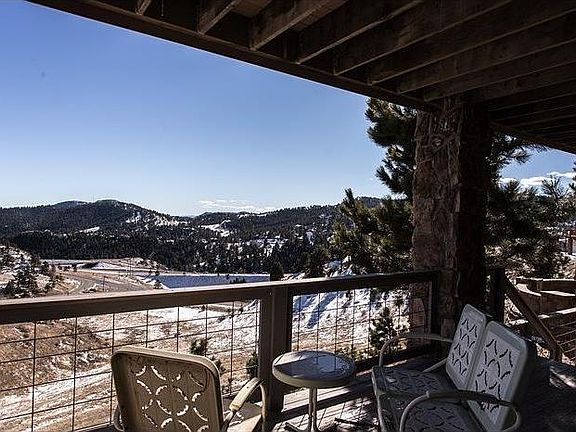 PERCHED ON LOOKOUT MOUNTAIN~STUNNING MOUNTAIN & CITY VIEWS~HUGE 1+ ACRE LOT~GORGEOUS CUSTOM HOME ADJACENT TO OPEN SPACE! All paved access, 25 min to downtown, 12 min. to Lt Rail, w/covered parking, 1 hr to ski, min. to I-70 & C-470. Majestic mountains & roaming elk, panoramic vistas from nearly every room. Step outside on tiered Trex decks to a wonderful waterfall & brick patio. Living rm in harmony with nature--picture windows vaulted ceilings, rock fireplace, open to kitchen w/ eat-in area & outdoor views! Spacious main flr master suite boasts high ceilings 5-pc bath, jetted tub, heated tile floors, stained glass window. Formal dining rm for entertaining. 2 bdrms up,open loft perfect office area. Spacious walk-out basement has amazing Great Rm, 2-sided antique fireplace, full kitchen & Sun Room (mom-in-law apt). 2 furnaces/2 ACs, hot water recirculation system, heated bath flrs, every amenity needed to relax & invite company of friends. Close to trails. Mountain living at its finest!