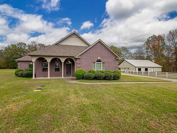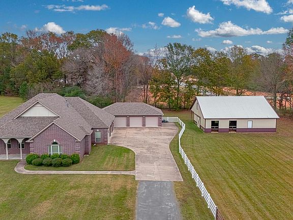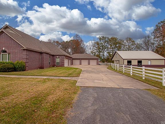 Come take a look at this awesome home with wonderful features!! Great room with Fireplace & tray ceiling! Formal Dining with beautiful chandelier!! Eat in Kitchen with breakfast bar, ice maker, wine cooler, trash compactor, walk in pantry & even a desk area!! Primary suite is a true retreat with luxurious shower, double vanities & walk in closet. Two other beds & bath are spacious! You will find a half bath, laundry room & a safe room!! Safe room includes a floor safe! Outside enjoy a second 3 car garage with a shop area that is separate from 3 car garage attached to home, a dog run, oversized patio area & pasture with 4-rail fencing along front & one side. The amazing 2,304 sq ft barn that includes 5 stalls, concrete floored area, tack area, floored deck, loft area & also a lean too!! Additional features include tankless hot water, wired for outdoor cameras in soffit area, central vac, heat pump with propane backup, propane tank, whole house generator to just mention a few!! Also roof, heat & air were replaced in the last couple of years. All of this in a peaceful location sitting on over 2.5 acres!!