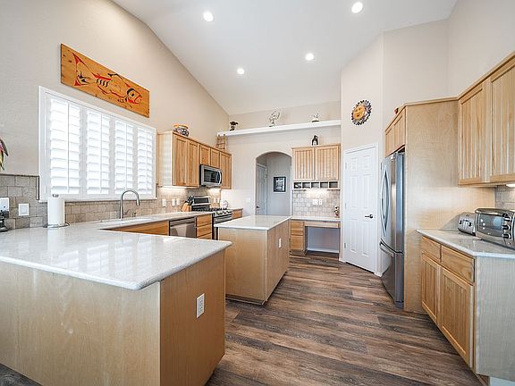 Beautiful custom home in NO HOA community overlooking 1.18-acre lot with spectacular views of Granite Mountain! This home boasts many upgrades including new granite countertops throughout home, new flooring, LED lighting, new light fixtures, new bathroom fixtures and sinks, new appliances, plantation shutters, new exterior trim paint, and new tile roof (partial). If you're looking for a well-maintained custom home in a quiet community with beautiful views, this is the perfect property for you! Enjoy the nature of your backyard while still being close to shopping, hospital, restaurants, and downtown. The 2.5-car garage can easily fit 2 large vehicles and has the bonus of new upper shelving for storage. Check out the documents tab for features list! This home truly shows like a model.