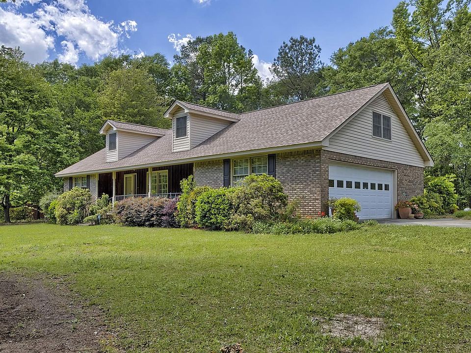 Gorgeous location on highly desirable Catawba Trail. Solid built brick home on approx. 1 acre. Beautiful trees that practically reach heaven flood this property and street with serenity. Hardwood floors in greatroom, hall and master bedroom. Unfinished room upstairs is floored for incredible storage or could be converted to extra bedroom suites and bonus room. Fireplace has gas logs, but can be converted back to woodburning. 148 ft. of road frontage. Currently on well and septic, but public water and sewer is at the road and ready to tap in if desired. Zoned for River Bluff High School.