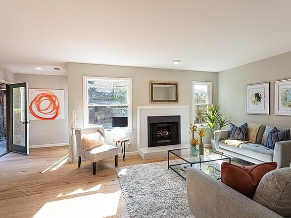 Beautiful single level townhouse style condo offers 2 bedrooms, 1 bathroom and 2 assigned parking spots. Being an end unit makes it bright with great natural light. The open living space of the dining and living room area features light streaming in from the windows and French doors that lead out to the private outdoor space making it perfect for entertaining. The living room also features a cozy fireplace with convenient gas logs. The landscaped patio is nice and sunny for those looking for a place to relax and enjoy the outdoors or add to the new and mature plantings which are on an automatic watering system. Newly updated interior with wide-plank hardwood floors, interior paint, low profile microwave hood and range, LED recessed lights, full size in unit washer/dryer. Convenient to shopping, parks, Harbor Bay Ferry Terminal and easy access to the highway and airport.