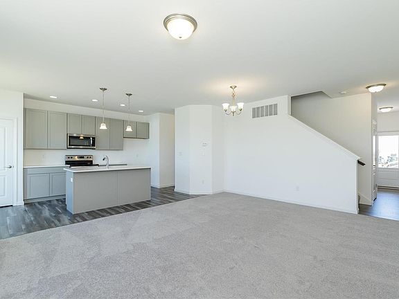 MOVE IN READY! Treat yourself to a new home by Fischer and Frichtel. This popular 3 BD, 2.5 BA home is located in the Charlestowne Place neighborhood. Located off Hwy 370 adjacent to New Town, this community has neighborhood lakes, playgrounds, gazebos & walking trls. Ext grounds maint services are provided for a monthly fee. Features inc 1,629 s/f of open living space, 9’ clngs, 42” cabinets, island w/seating bar, Quartz countertops, SS appl, laminate flooring, W/I closets in every bdr, a HUGE W/I closet in the Mstr, coffered clng in the Mstr Bdr, raised height dbl bowl vanity in the Mstr Bath, convenient 2nd flr laundry, R 38 attic insulation, low E windows, 50 gal water htr, pest shield control system, walk out bsmt, R/I bath & more. The ext is impressive w/brick, shake siding detail, 2 car garage w/opener, coach lights, full yard sod, prof landscape, patio & an irrig system. Enjoy easy access to Hwy 370, restaurants, parks, Historic Main St & Lambert Int airport. Make it yours!