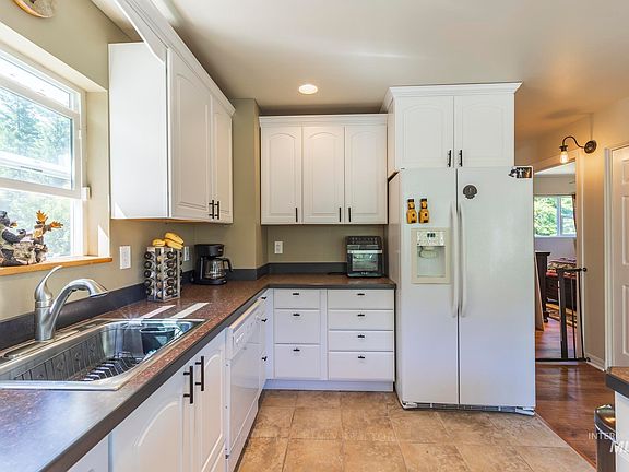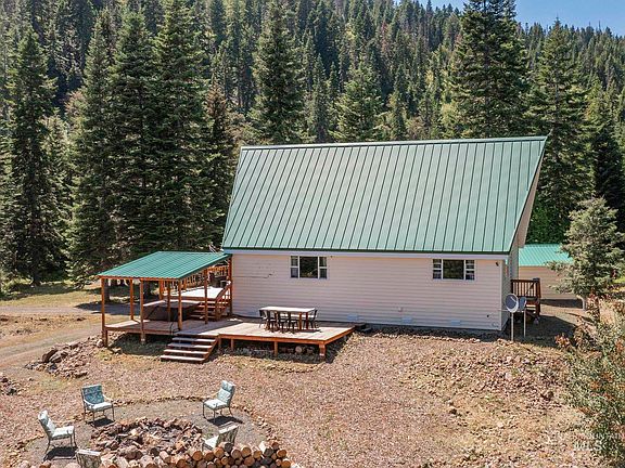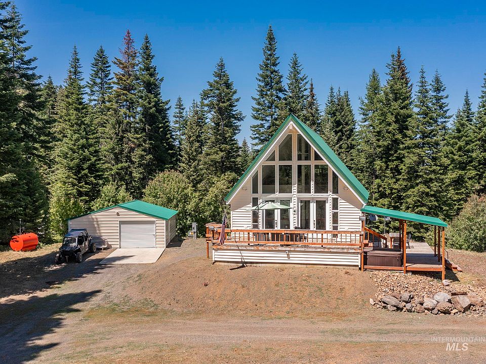 This move-in-ready property offers seclusion, privacy, and a perfect blend of comfort and convenience. With an electric gate to the property, this home is a hideaway with 2 bedrooms and 1.5 baths, a detached 2 car garage, and 3.99 AC. The home is situated only minutes from Grangeville, Idaho, offering easy access to amenities, services, and recreational activities. A radiant floor system with an oil burner comfortably heats and offers easy maintenance of vinyl siding and standing seam metal roof. The Master Bedroom and Bath are on the main level with laundry, kitchen, dining, and great room. Cove Rd is paved and maintained year-round, 900 ft driveway is gravel. The 10-gpm well provides you with a steady and abundant water supply. Enjoy your morning or evening beverages on the 696 sq ft deck or in the hot tub (included.) National Forest is 5 min away, and Southfork of the Clearwater River is just 20 min away. Embrace the tranquility and adventure that this property offers.