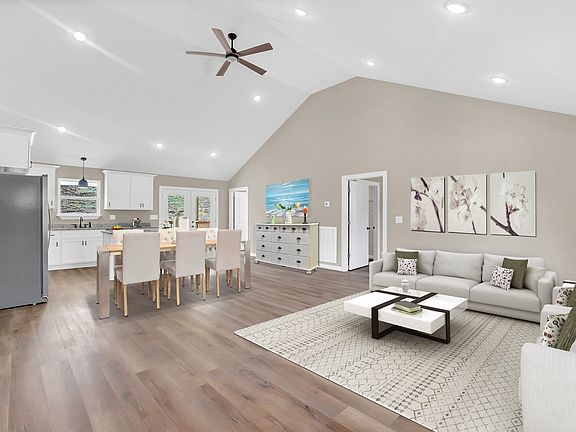 Cottage in Country on 1 acre with front and back porch, open floor plan w/vaulted ceiling, wood floors, tile in wet areas, master suite w/walkin closet & private bath, shaker cabinetry, granite tops in kitchen & baths, SS appliances, room for detached garage or barn, lots of options for country living. Between Hartsville and Carthage
