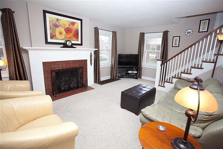 Spacious & unique 2 1/2 story Central Clintonville home. Updated with new replacement windows & high efficiency HVAC. Large finished 3rd floor MBR suite. Living room with working fireplace. Refinished oak flooring in dining room. Large sunny kitchen with oak cabinetry; updated appliances, tile backsplash. French doors from dining room to the wrap around back deck. Waterproofed basement with sump pump system. Lower level has an insulated musician's room. Huge 4 car garage.