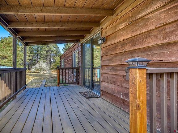 Great Location with Easy Access. Located in the heart of the Pagosa Lakes Area just minutes to all uptown amenities. Newly UPDATED and SPACIOUS 3 bedroom 2 full bath manufactured double wide home sitting on .17 of an acre backing to a very large greenbelt with views of Pagosa Peak and mature Aspen Tree's, Co. Blue Spruce and Gamble Oaks surround the home which provide privacy and shade. NEW FRONT COVERED DECK, NEW BACK COVERED DECK, NEW PAINT THROUGHOUT, NEW WINDOWS THROUGHOUT, NEW FIXTURES THROUGHOUT, NEW FLOORING IN ENTRY WAY, KITCHEN, LAUNDRY ROOM, PRIMARY BATHROOM AND BEDROOM, 2nd and 3rd BEDROOMs and 2nd BATHROOM, NEWER APPLIANCES, NEW SLIDING CLOSET DOORS IN 2 BEDROOMS, This very nice clean home has an open and roomy floor plan, kitchen and family room are open to one another and the wood burning stove will be so nice in the winter months and really help on the heating bills, formal dining room and front living room have vaulted ceilings which give it a grand feel when you walk in. This home has all public utilities including public water, sewer, natural gas, electric, cell and good internet service, landline and trash service. Plenty of storage space including a pantry and linen closets. Minutes away from Hwy. 160, Walmart, shopping, restaurants, hot springs, hospital and approx. 35 miles from Wolf Creek Ski Area. This is a great starter or investment rental opportunity!! Green Belt behind home leads to the Martinez Canyon Open Space and the San Juan National Forest Access which is great for hiking or walking. Home can be purchased furnished.