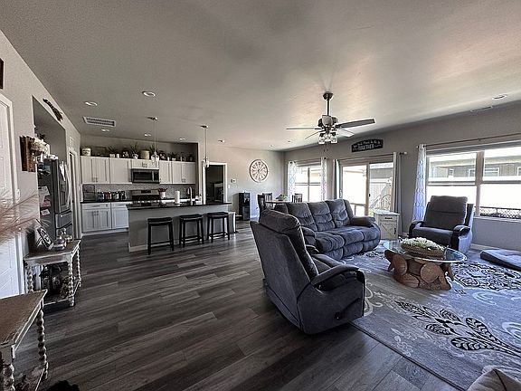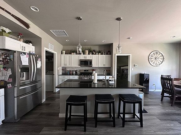 Beautifully clean home is move-in ready! All appliances stay for the buyer(s); refrigerator, gas stove, microwave, dishwasher, washing machine and dryer. This home is an open concept design with split bedrooms. Master bedroom is on the opposite side of the home as the other two bedrooms, which are also split between a bathroom so there are no shared walls. The vinyl flooring is new! You'll love the giant walk-in pantry with floor to ceiling shelving. The master bedroom also features a walk-in closet, accessible through the bathroom with a private toilet and double sinks. This property is fully landscaped with a sprinkler system connected to a timer and a manual drip system, but run on city water. There is no irrigation water in this subdivision. Annual HOA dues are $150.