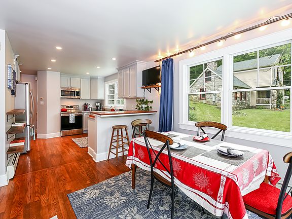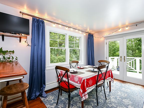 Romantic, Light and Airy! This property is not to be missed on your home hunt! A light filled home with open concept living space. So many amazing details for this price range; New kitchen, master bedroom with walk-in-closet, en-suite bathroom, second bedroom with en-suite bathroom, two fireplaces, dining/ living rooms hosts french doors leading to lovely large deck. The deck feels like a treehouse view with relaxing sunsets. Lower level has a large stone fireplace leading to a walk out porch. Utility room with washer and dryer has its own walk-out exit to the outside. Nice stairway leads to a full finished attic with dormers over windows that can meet all your storage needs. Extra large driveway. Large property has lots of space for outdoor entertaining or gardeners dream. Close to country farm store, shops, highways, schools, and easy commute to NYC.