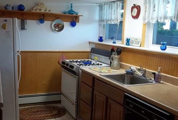 GROUND LEVEL on FALMOUTH HARBOR THIS 3/4 BASEMENT unit features over 1000 square feet of space. The full kitchen has all major appliances and there is a dedicated washing machine and dryer that is included with the unit. There is a peninsula that separates the kitchen from the bead-boarded living room, which has built in shelving and a little "nook" that can serve as an office. The bedroom is in the rear of the unit. There is a built in A/C. Gas heat & hot water. 1 YEAR lease (renewable) 1ST LAST AND SECURITY deposit req'd VERIFIABLE INCOME & REFERENCES REQUIRED NO SMOKERS NO PETS
