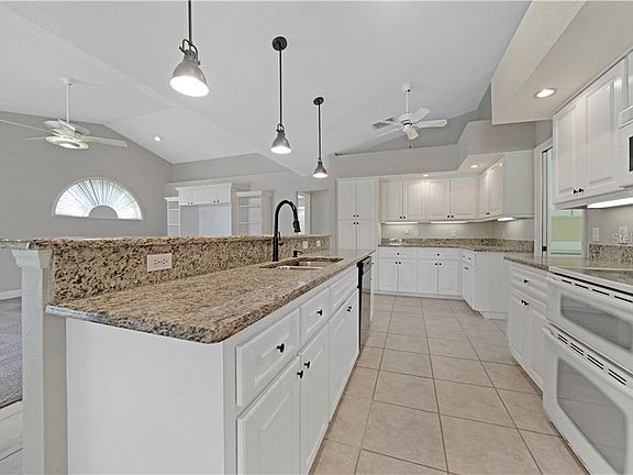 - Interior Features: Ceiling Fans(s), Eating Space In Kitchen, High Ceiling(s), Master Bedroom Downstairs, Open Floorplan, Stone Counters, Walk-In Closet(s), Thermostat, Kitchen/Family Room Combo, Living Room/Dining Room Combo, Built in Features, Window Treatments, Vaulted Ceiling(s)