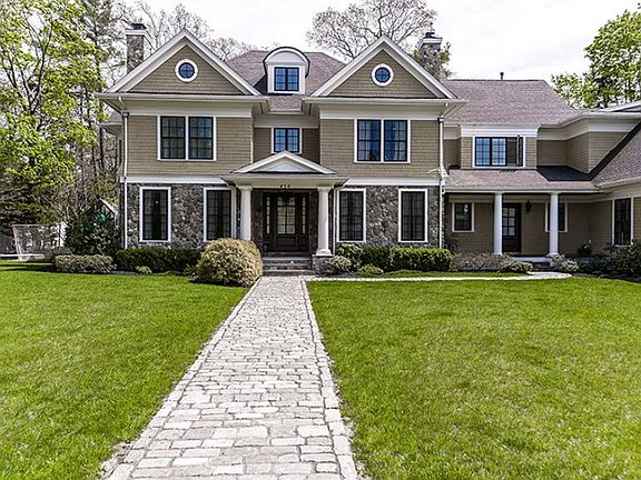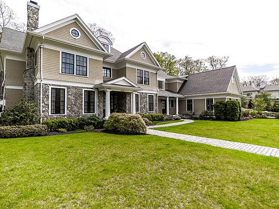 Chestnut Hill, Brookline. Prominent stone & cedar shingle style home privately tucked away in a cul-de-sac. Built in 2008, by one of the top luxury builders, this expansive home blends the architectural integrity of the area's historic homes with all the modern conveniences & open floor plan for today's modern family. Grand entry with high coffered ceilings is flanked by a formal living & dining room, with fireplace. Open floor plan with huge kitchen, breakfast room & adjoining family room w/ direct access to the gorgeous patio and yard. Oversized 3 car heated garage opens into a large mudroom outfitted with abundant storage and half bath. Over garage is an office/ aupaire suite. 1st fl. office or in-law suite w/ access to yard. 4 large en-suite bedrooms on 2nd floor, w/ a spectacular master suite. 3rd floor game room and guest suite. Beautifully landscaped grounds w/ inground irrigation. Min. to shops, restaurants, T, private & public schools. Close to Boston, Cambridge & hospitals.