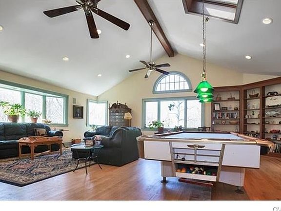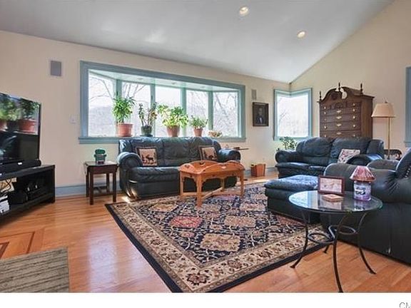 Lovingly maintained home on a charming level lot surrounded by beautiful perennial gardens & stonewalls, deeded rights to Rainbow Lake & front views of endless open space. This incredible value offers countless updates and amenities including a well appointed eat-in kitchen that features ceramic tile flooring with radiant heat, newer appliances, bead board wainscoting, granite counters, vaulted ceiling w/skylight & door to the deck. The spectacular Great Rooms offers cherry built-ins, hardwood flooring w/walnut inlay, vaulted ceiling w/skylights & ceiling fans; well equipped cherry wood bar w/sink and small refrigerator. Four bedrooms, two full baths and an oversized garage complete this must see picture.