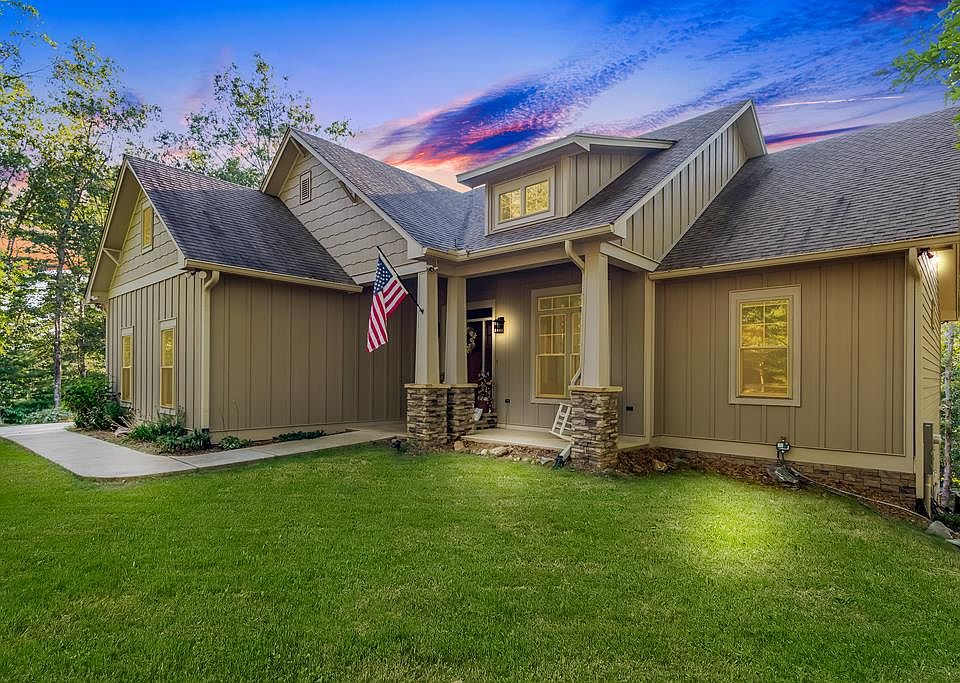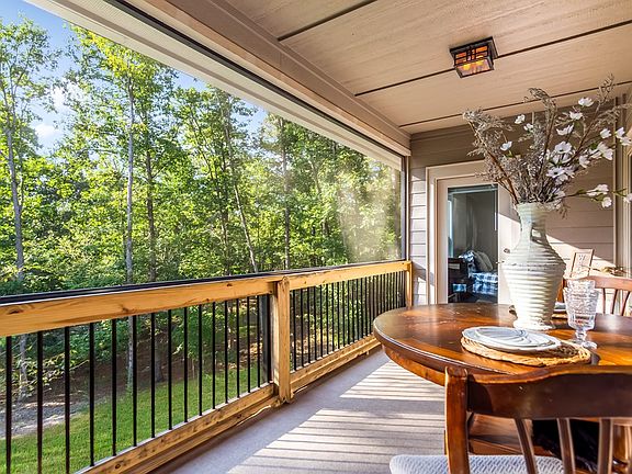 Nestled just outside of Blue Ridge, this 5BR/3BA custom home offers a rare blend of mountain grandeur and modern convenience. Thoughtfully designed with upscale finishes, the home features granite countertops, a walk-in pantry, and striking stonework in the bathrooms. The spacious master suite includes a custom walk-in closet and access to the screened back deck - also accessible from the dining room and guest bedroom. Enjoy seamless indoor-outdoor living along with modern comforts like smart home technology, fiber internet, a heated whirlpool tub and a cozy gas fireplace. The finished basement is ideal for entertaining, complete with a bar, surround sound, built in cabinetry and a second laundry room. The wide driveway allows easy boat or trailer access, complimented by a 2-car garage and two fully wired sheds. The unfinished sealed attic provides abundant storage as well. Located in Harbin Woods, a gated community with paved roads and a peaceful pond-just minutes from Lake Nottely. This is not just a home; it's mountain living elevated.