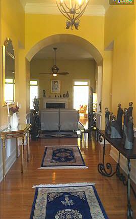 Master on the 1st floor, High ceilings in the large entrance foyer, formal dining room. Arched entrance to great room/kitchen. Huge granite bar w/large stainless steel sink separates kitchen & great room. Stainless steel gas stove, microwave & dishwasher. Butler's pantry w/GRANITE countertops & 42 in. upper cabinets. Hardwoods in foyer, dining room, butler's pantry & hallways. Florida Room and Bonus room, Custom colors throughout, molding in dining room. Master bath has high ceilings, tiled floor, double vanity, jetted tub, glass block window, separate shower & enormous closet. Separate HVAC unit supplies 2nd level. Backyard fully fenced w/separate fenced area for dog or garden. Deck & brick patio. Full irrigation system