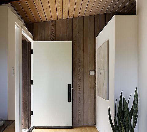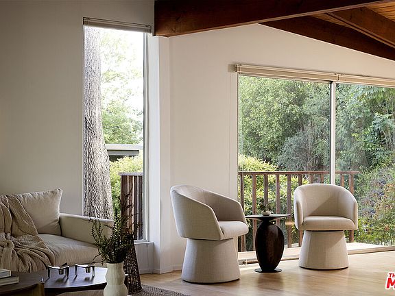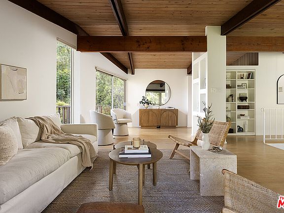 A Serene Mid-Century Retreat Surrounded by Nature Tucked into the treetops of lower Kenter Canyon, this classic Mid-Century residence by architect Paul Tay offers privacy, warmth, and seamless connection to nature. Held in the same family for decades, the home presents a rare opportunity to own an authentic example of California modernism, ready to be customized or reimagined to suit today's lifestyle. Set on a generous, lushly landscaped lot, the 4-bed, 3-bath home features clean architectural lines, exposed wood beams, and walls of glass that frame expansive canyon views. Multiple decks invite indoor-outdoor living, ideal for entertaining or quiet evenings under the stars. The main level includes a spacious living room, a Viking-equipped kitchen, and a fourth bedroom that works equally well as a home office or guest space. The middle level offers two additional bedrooms and a full bath, while the lower level is dedicated to a private primary suite with its own deck and garden views. A rare flat backyard with mature trees and layered plantings completes the retreat-like feel perfect for play, gardening, or evenings around the fire pit. Located within the acclaimed Kenter Canyon Elementary Charter district and just moments from hiking trails and Crestwood Hills Park, this is Brentwood at its most tranquil and timeless.