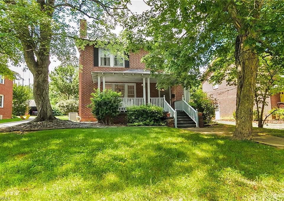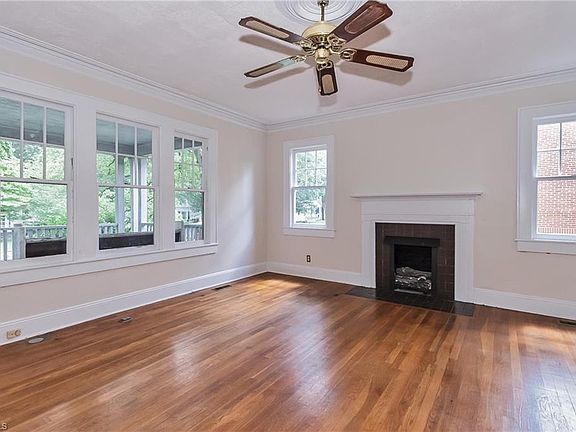 Charming Historic home near downtown Burlington features hardwood flooring, tall ceilings, ceiling fans, wide moldings, living rm with gas log fireplace, french doors to dining room; ceramic tile in kitchen, breakfast & bath. Lots of cabinets in bright kitchen; appliances remain. Spacious bedrooms and flex room on 2nd level. Exterior features include rocking chair front porch, large rear deck, paved drive, sidewalk, landscaping,fenced backyard & detached garage.