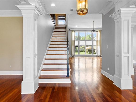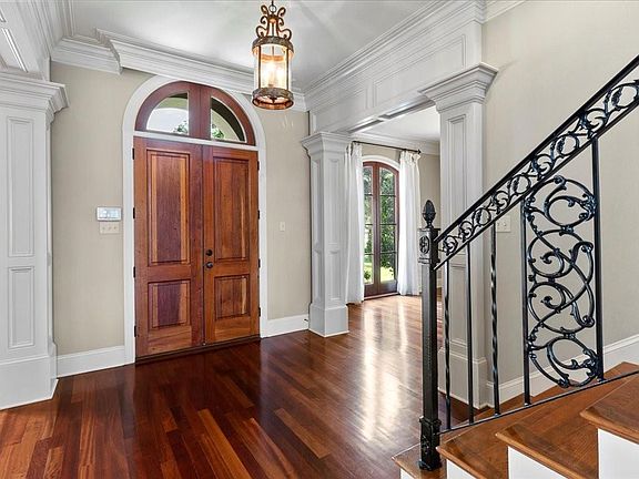 This exquisite home, located in the Arbor Walk subdivision, offers a luxurious living experience with four bedrooms, three baths and 3697 sq ft of living space. As you enter, you are greeted by the elegance of hardwood floors that lead you through office, formal dining, living and primary spaces. The kitchen features fabulous Chicago brick floors, large center island with counter seating, granite countertops, and plenty of cabinet storage. Kitchen opens to a cozy sitting area with double sided fireplace to living room adding a touch of sophistication to the space.