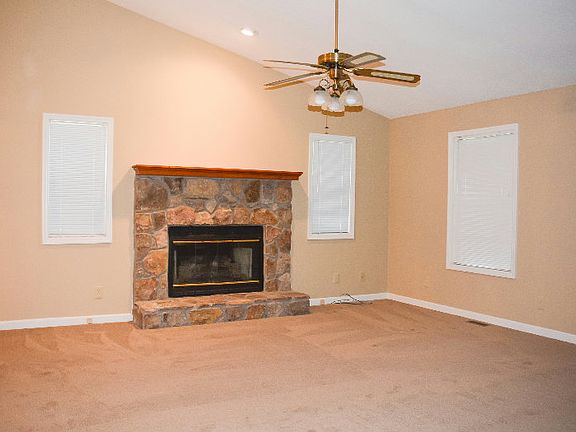 2 Bedroom/ 2 Bathroom Ranch Style Home All on One Level. Easy Maintenance Living with a Gentle Wooded Lot in a Nice Community. Open Floor Plan with Cathedral Ceilings, Stone Gas Log Fireplace, New Carpet throughout, Nice Kitchen with All Appliances and Washer and Dryer Included, Dining Area, Large Laundry Area, Large Covered Front Porch, Carport and a 16X12 Outbuilding with Electric. This is a Great Home that is Move in Ready.