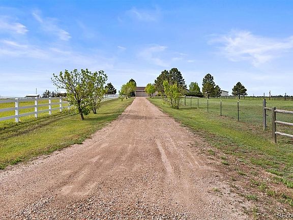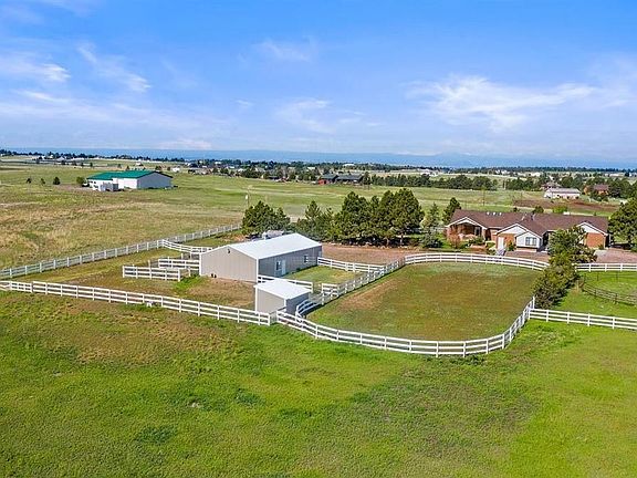 True single level living on a rambling ranch appointed on 8 acres. A haven away from the hustle and bustle and a perfect opportunity for horse enthusiasts or ranch lovers alike. The interior features a split floor plan with 6 beds and 4 baths. The master bath and powder room have been updated. The spacious and updated kitchen features an oversized range, dual ovens, microwave, warming drawer, trash compactor, pie oven, pasta cooker, built ins, granite countertops, and expansive separate pantry will appeal to any chef. The exterior includes a 40X20 5 stall barn with auto waterers, storage shed, horse shelter, fully cross fenced lot, round pen, water feature, yard, built in BBQ, and a private master bedroom deck. The expansive views create a beautiful setting to enjoy from almost every room. Property is located on the edge of Franktown and Elizabeth with a short commute to Elizabeth, Parker, Franktown, Castle Rock and The Denver Tech Center. A true horse lover's dream!!!