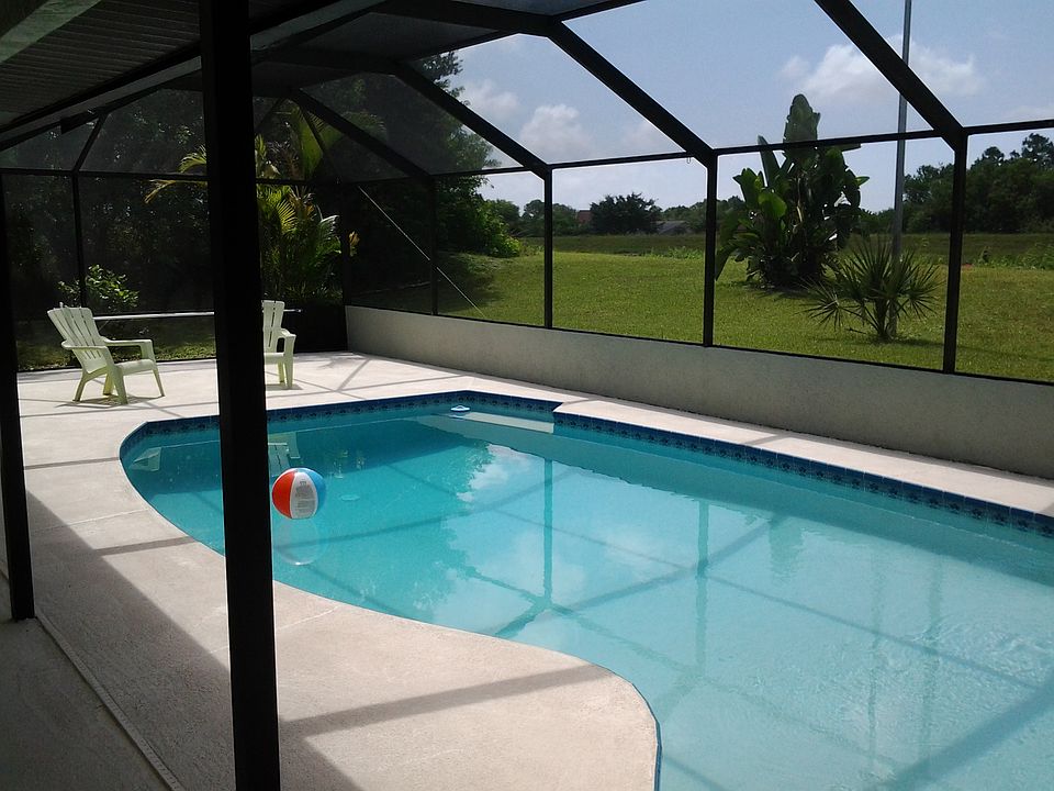 Very well built CBS enclosed pool home is perfect for entertaining. Kitchen has pass through window to pool and patio area with wide view of canal. Side load garage with landscape adds curb appeal to front facade. Living, kitchen and bathrooms are tiled with hand scraped wood laminate in bedrooms. Sprinkler system on well help maintain lawn. Home is located close to major highway, shopping and entertainment.
