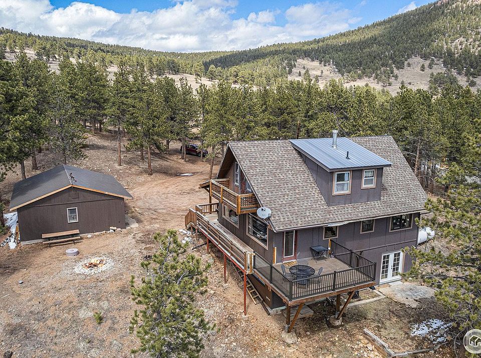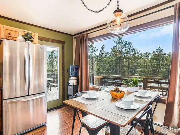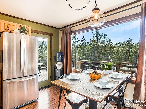 Enjoy the awesome forest setting with gorgeous mountain views from this peaceful mountain home situated on 2.65 acres! With perfectly framed views of Meadow Mountain from your living room and wrap-around deck, this house features stunning views and privacy as well as a perfect snow sledding hill and beautiful rock outcroppings with a seasonal stream below. Great open floor plan with oversized windows and a roughed in fireplace. All 3 bedrooms have private, walk-out deck for enjoying your morning coffee. The walk-out basement features 2 sets of French doors, offering tons of potential. Half the basement is currently used as a den and the other half for storage. There is also an office for those lucky enough to work from home. There is an oversized 2 car garage. Near National Forest with easy access to hiking trails and cross country skiing. Great central location convenient to Estes Park, Allenspark, Lyons, and Boulder, with nearby skiing in Nederland. Sellers have Boulder County approved architectural plans for adding nearly 1,000 sq ft to this home. Septic recently reviewed and approved by Boulder County. New Boiler/On Demand Hot Water Heater 2023. New stainless double oven/range and microwave 2023. This is a fabulous opportunity to buy a piece of the Rockies in this comfortable year-round home. Don't wait ... this one won't last long!