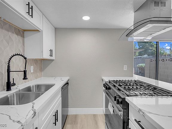 Welcome home to this beautifully updated end-unit townhome in the heart of Henderson! Fully move-in ready with brand-new stainless steel appliances, Calacatta quartz countertops, modern lighting, and updated bath fixtures. The open living area flows effortlessly to a private patio—perfect for relaxing or entertaining. Upstairs, both bedrooms are generously sized, with the primary offering a private balcony retreat. Enjoy the convenience of covered parking at your front door and low-maintenance living with HOA that includes water, sewer, trash, and landscaping. Minutes from Cadence, Henderson Hospital, shopping, and freeway access—this is the perfect blend of comfort, style, and location!
