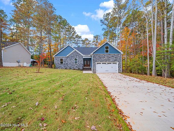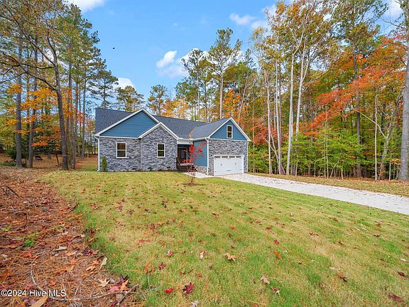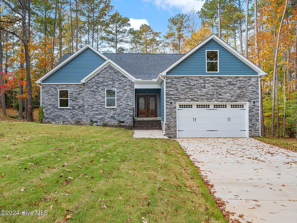 USDA eligible!! Gorgeous new home located in desirable Lake Royale!! This home has it ALL!! Features 3 bedrooms and 2.5bathrooms, 22 ft cathedral ceilings and shiplap surrounded electric fireplace with light changing options in the living room, beautifuldouble mahogany entry door, walk-in custom shelving closet systems throughout the house, natural oak LVP floors, tankless waterheater, front door smart lock and ceiling fans. Gourmet kitchen with level 3 granite counters imported from Brazil, soft-close cabinets,stainless steel appliances, air-fry convection oven and large walk-in pantry. Spacious owners suite with cathedral ceilings and walk-incloset. Bathrooms with custom cabinetry, granite counters, calacatta porcelain tile and ceramic tile showers. Owners' bath with Woodbridge Venetian Whirlpool jetted and air massage tub. Large backyard and screened porch great for entertainment. Lake Royale offers wonderful recreational amenities such as clubhouse, pavillion, community swimming pool, tennis courts, 2 beaches anda golf course. Come see it!!