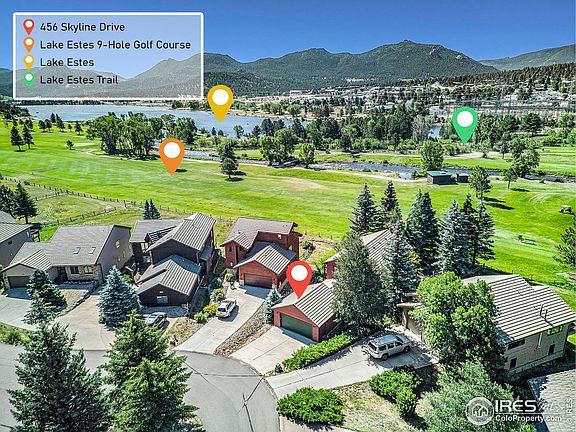 Welcome to 456 Skyline Dr, a stunning home located on the #2 tee of the golf course, with easy access to Fall River and Lake Estes just steps away. Nestled in a quiet cul-de-sac, this home has been remodeled throughout over the last 4 years.The main floor features a spacious kitchen with an open floor plan that flows seamlessly into the dining area and large living room, complete with a cozy fireplace. Step out onto the expansive 459 sq ft deck that overlooks the golf course-perfect for entertaining or simply enjoying the serene views. Additionally, there is a versatile bedroom/office with a beautifully updated bathroom on this level.Upstairs, you'll find a luxurious primary master suite retreat with a magnificent, updated bathroom and a private deck. Two more spacious bedrooms, a full bath, and a convenient laundry area complete the upper floor.This home offers the perfect blend of tranquility and convenience, with an easy walk to downtown Estes.