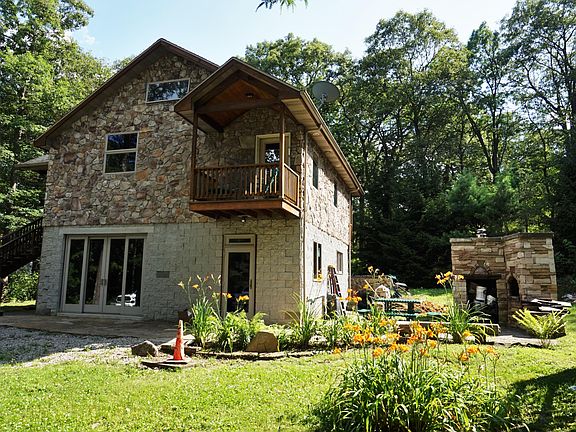 Unique property with two residences. One currently rented for $400/month. Main home has many features including first floor unfinished apartment with full bath. Stone exterior with flagstone patio. Covered front porch & two covered balconies. Hardwood floors throughout . Exposed beams, skylights and Anderson windows. Open floor plan. Two bedrooms plus a loft that could be used as a third bedroom. And much more!