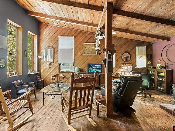 Nestled in the Pine trees, rustic, contemporary 2 Bed 1BA, secluded home on 60 acres m/l, very private with 24X40 vehicle shed and 24X50 workshop. Lots of wildlife and would make a wonderful retreat or private home.