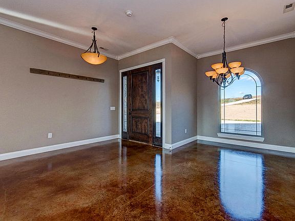 A STUNNING modern-rustic style home with a panoramic view of rolling hills and a variety of wildlife all on 5 acres. Cozy up next to the fire with a 42'' wood insert on the massive stone fireplace that demands attention as soon as you walk through the door. Trendy stained concrete floors throughout. Custom kitchen complete with walnut butcher block island, double ovens, wine cooler, commercial grade dishwasher, touch tone faucet, walk-in pantry and much more! The many upgrades include an 18 Seer heat pump, 36'' wide doorways, Navien constant hot water heater, spray foam insulated, sprinkler system. Come experience this one of a kind home before it's gone!
